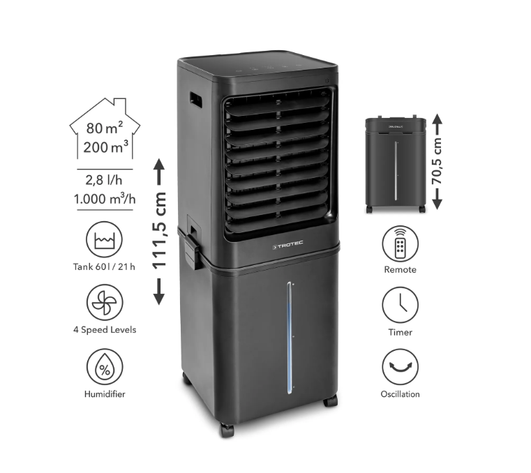 Aircooler (Δροσιστής) by TROTEC Germany – PAE 80 & Υγραντήρας , καθαριστής/ανανεωτής αέρα.